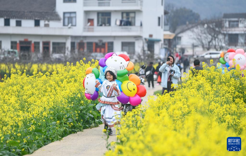 2月17日,游客在贵州省黔西南布依族苗族自治州兴义市万峰林景区的油菜花田里游玩。新华社发(刘朝富 摄)