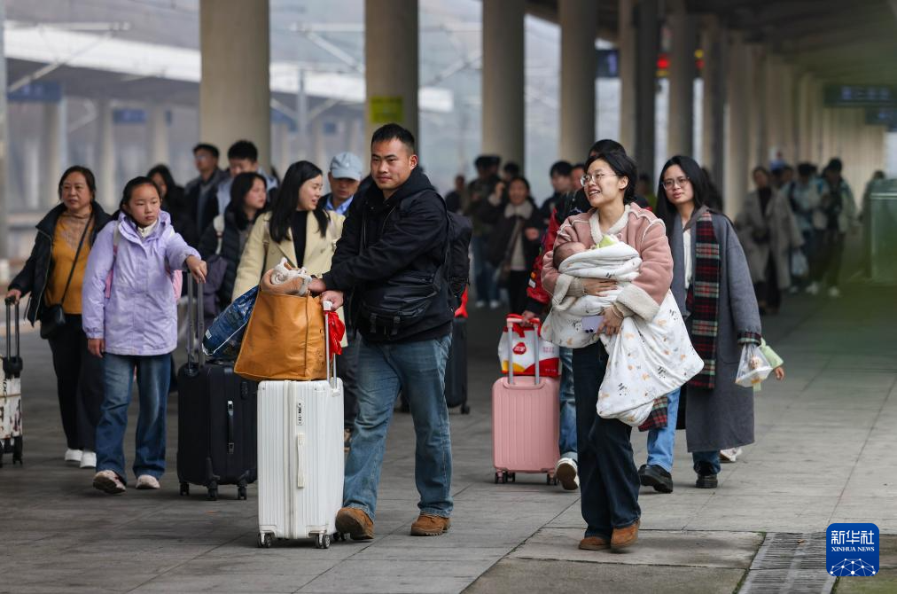 2月23日,旅客在沪昆高铁贵州铜仁南站乘车。