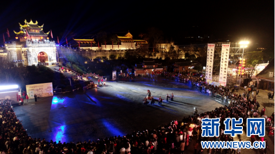青云古镇夜游表演现场。新华网发