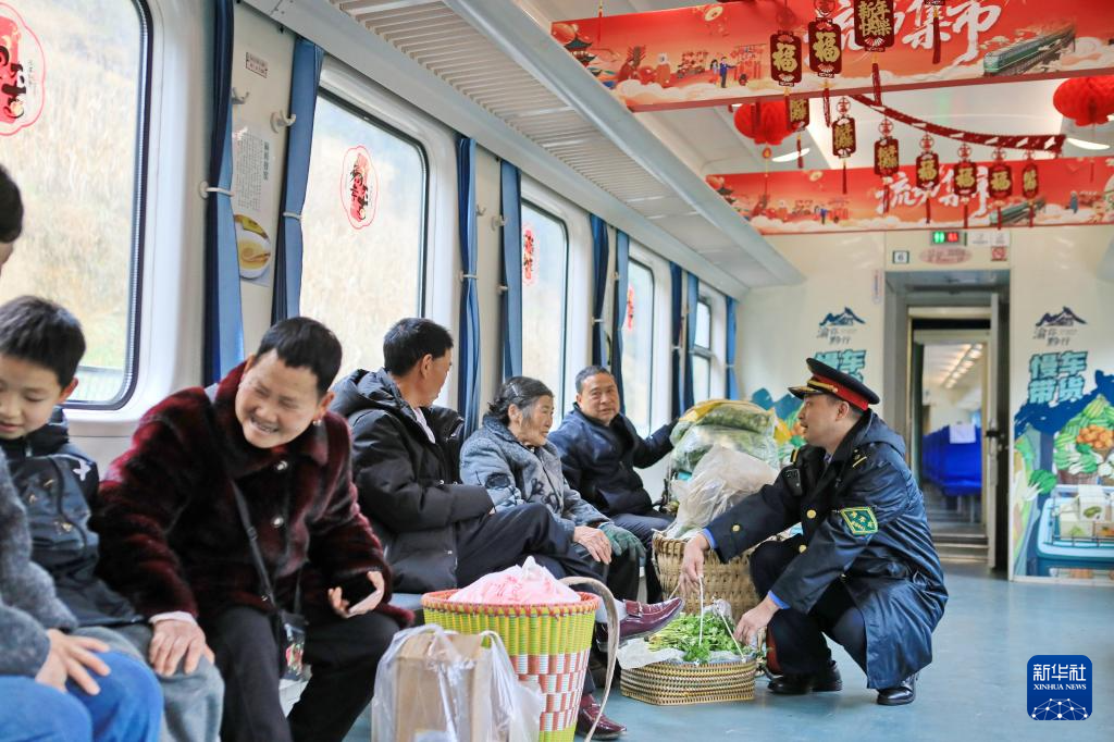 穿行在崇山峻岭间的5629/5630次列车,是一趟连接贵州遵义与重庆的公益“慢火车”,开行三十三年来,它以低廉的票价和“站站停”的坚守,不仅方便了沿线群众的日常出行与农货运输,还在车厢里设置了惠农专区,方便菜农安置货物及售卖。这趟穿行于渝黔山区的列车成为沿途老乡们的“流动集市”,也串起了一条山区群众的出行路与致富路。