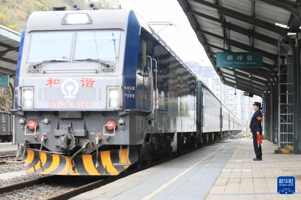 2月25日,5630次列车驶入遵义市桐梓站。新华社发(王波 摄)