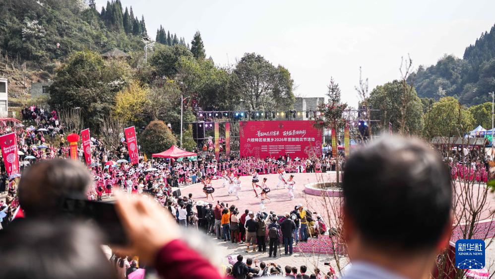 2月26日,在贵州省六盘水市六枝特区梭戛苗族彝族回族乡高兴村跳花场旁,苗族群众在观看表演。新华社记者 陶亮 摄