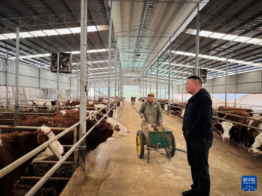 2026年2月10日,郑培坤与农户交流肉牛养殖经验。新华社记者 周宣妮 摄