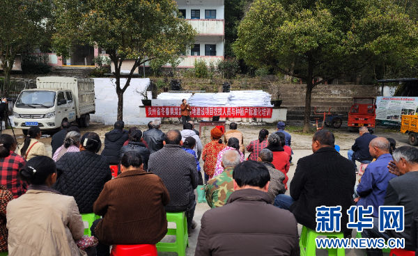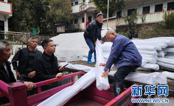3月6日,贵州农发集团在新场村发放配套农资。新华网 卢志佳 摄
