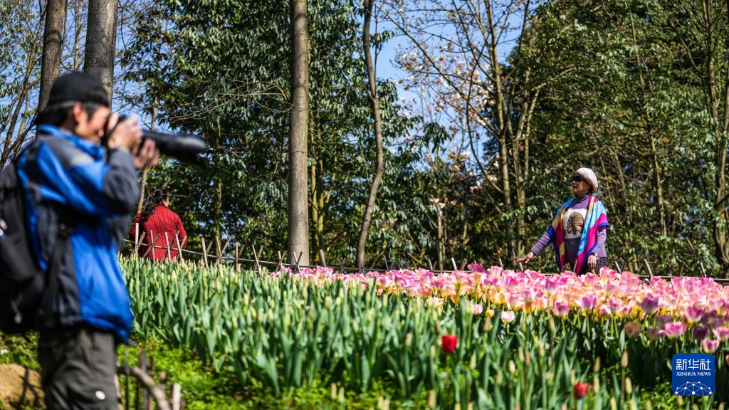 龙里县龙架山国家森林公园内郁金香花海一隅(3月12日摄)。新华社记者 陶亮 摄
