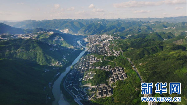 航拍赤水河畔的茅台镇。新华网 卢志佳 摄