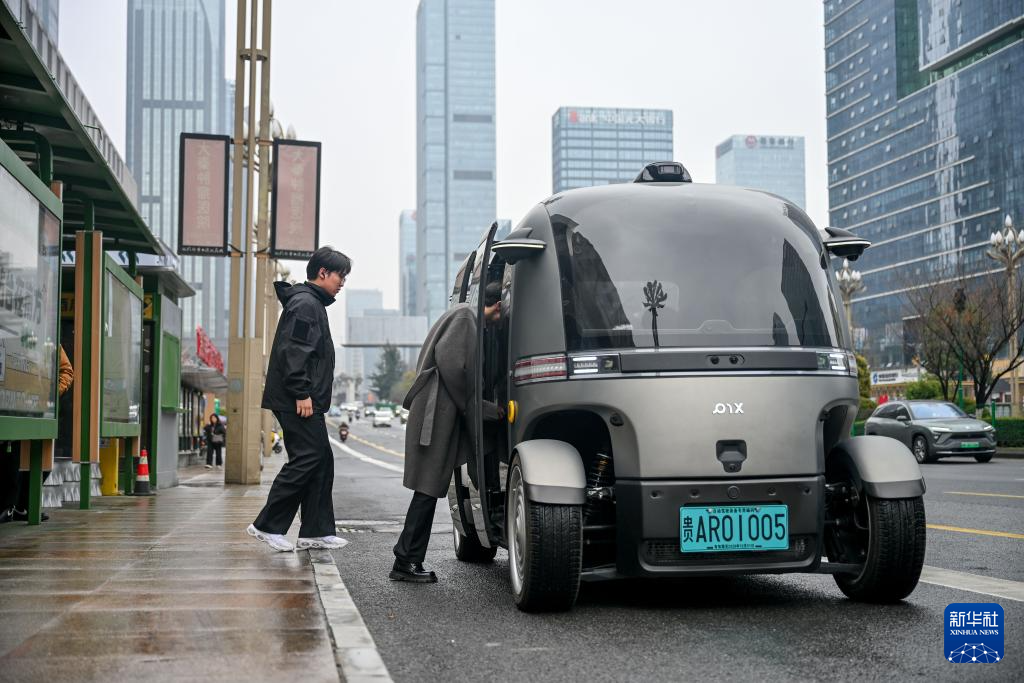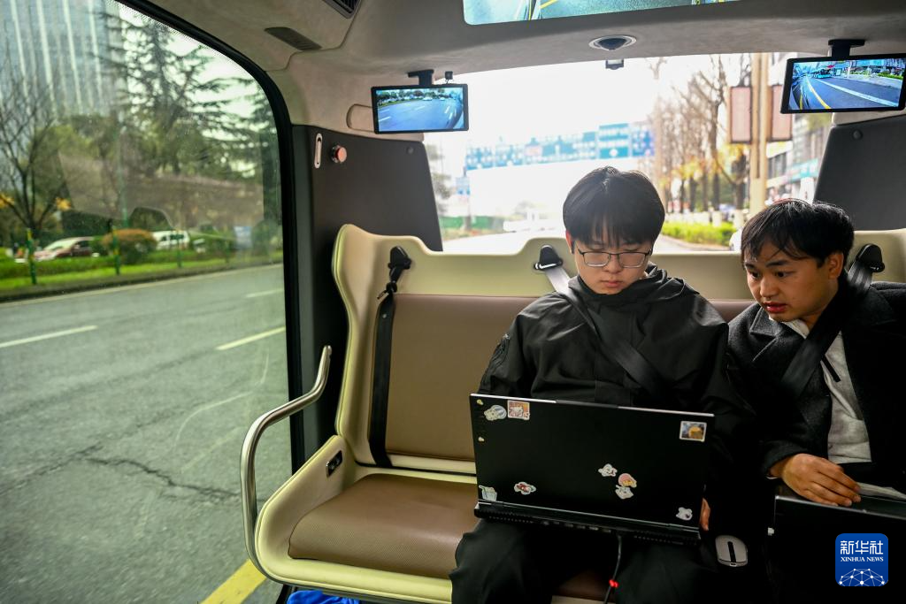 3月16日,在贵州省贵阳市观山湖区,市民体验自动驾驶移动空间。新华社发(袁福洪 摄)
