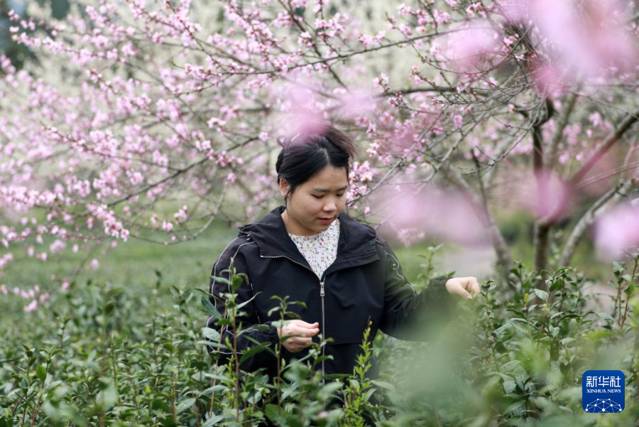 3月21日,村民在贵州省福泉市陆坪镇福兴村茶园采摘春茶。新华社发(肖伟摄)