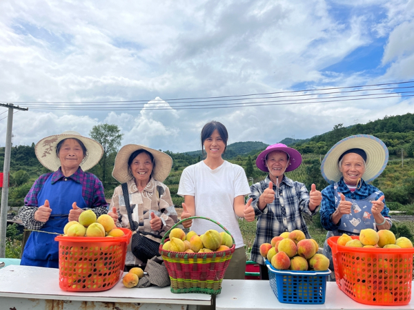 陈星星(中)帮助村民卖黄桃。鄢永华摄