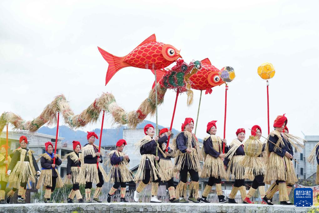 3月28日,在贵州省榕江县三宝侗寨,侗族群众舞稻草龙欢庆“萨玛节”。新华社发(李长华摄)
