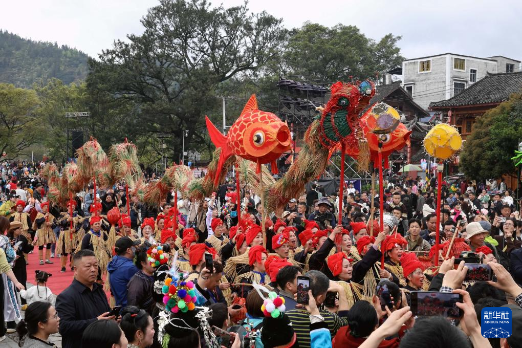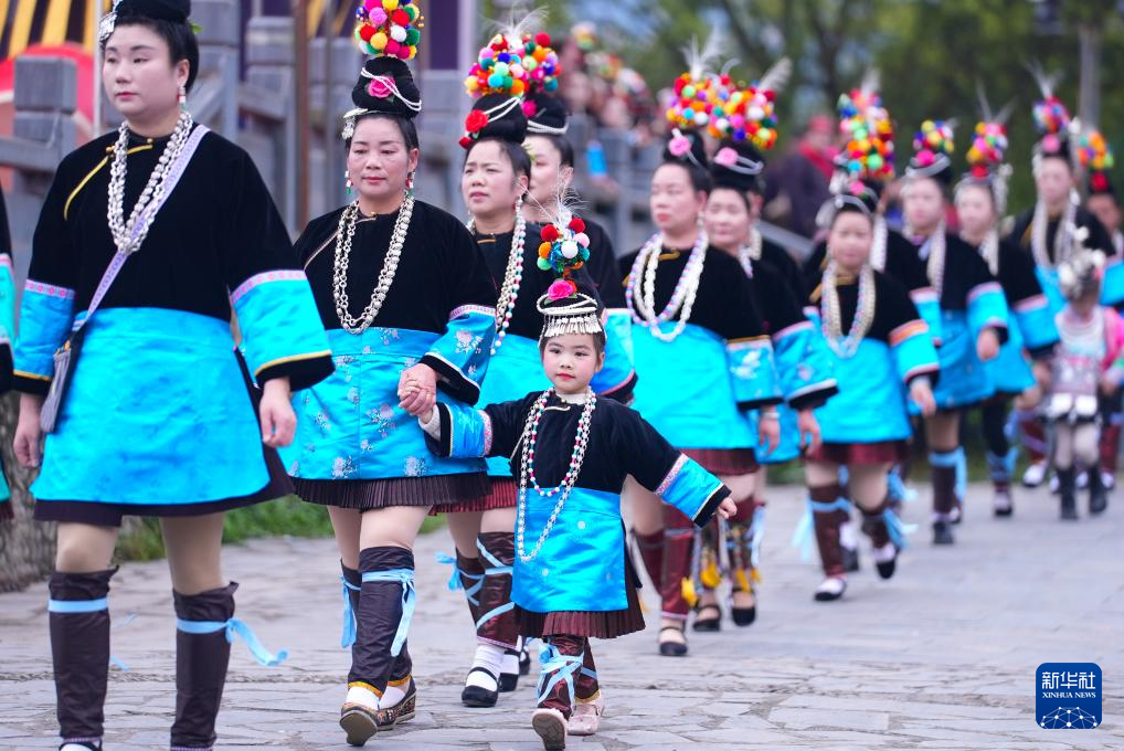 3月28日,侗族群众在贵州省榕江县三宝侗寨参加“萨玛节”活动。新华社发(韦贵金摄)