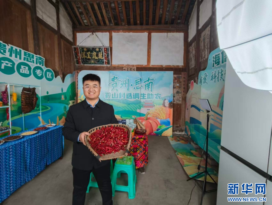 汪邦彦的直播地点设在村民家的一间闲置老屋,首次直播设备简陋,一条横幅、一张桌子。几个月摸索后,直播间配备了灯光、反光板、背景板等,货物摆放有序、色彩搭配得当。随着粉丝和人气积累,相关商家还赞助了冰箱、空调、电视机用于商品保存和展示,越来越多周边村镇乃至邻县的农户、厂家联系他,希望帮忙推介当地特产。汪邦彦也由此化身为思南当地的“好物推荐官”,既丰富产品种类、增加粉丝黏度,又为村集体增加收益。