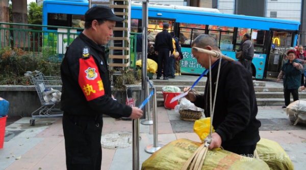上午七点,贵阳市云岩区大营坡252路公交车站台已是一派繁忙景象。菜农们将菜篮子从公交车上一一卸下,手持一张特别的“身份证”,在工作人员的引导下,有序进入252路边惠农站。