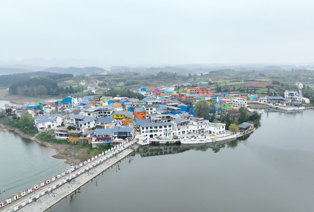 清镇市红枫湖镇右二村“蒙安彩色小镇”航拍图。代胜强 摄