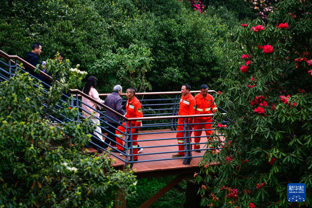 森林防火队员们在贵州百里杜鹃管理区金坡景区巡逻,排查森林火灾隐患(4月2日摄)。新华社记者 杨文斌 摄