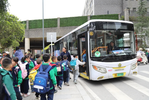 放学后乘坐专线归家的学生。