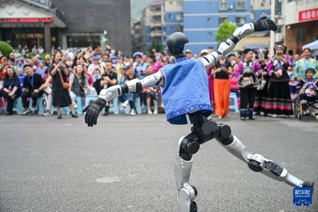 4月19日,在贵州省黔西南布依族苗族自治州望谟县,机器人在民族大联欢巡演活动中表演。新华社发(袁福洪摄)