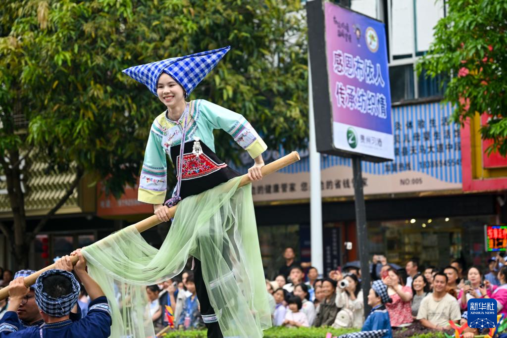 4月19日,贵州省黔西南布依族苗族自治州望谟县举行“三月三”民族文化活动,人们欢聚一堂,共庆传统佳节。