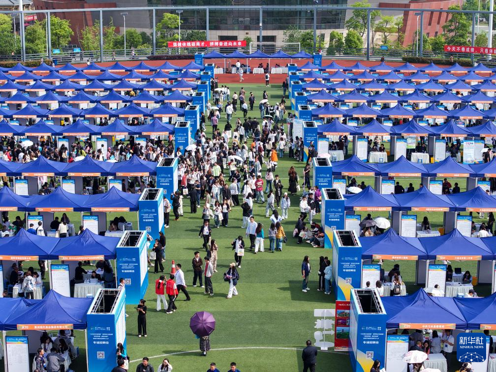 4月25日拍摄的第十四届贵州人才博览会现场(无人机照片)。新华社发(龙建睿 摄)