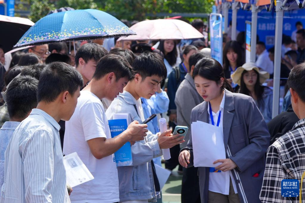 4月25日,招聘单位工作人员为求职者介绍岗位信息。新华社发(龙建睿 摄)