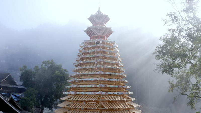 采用杠杆原理 不用一钉一铆 探访侗族鼓楼建造技艺