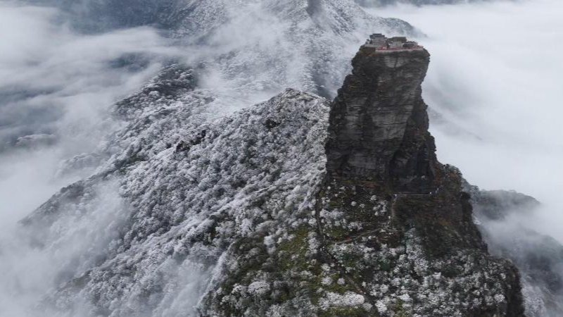 银装素裹 世界自然遗产地梵净山迎今冬初雪