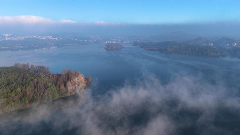 贵州威宁:云海舒卷映湖光