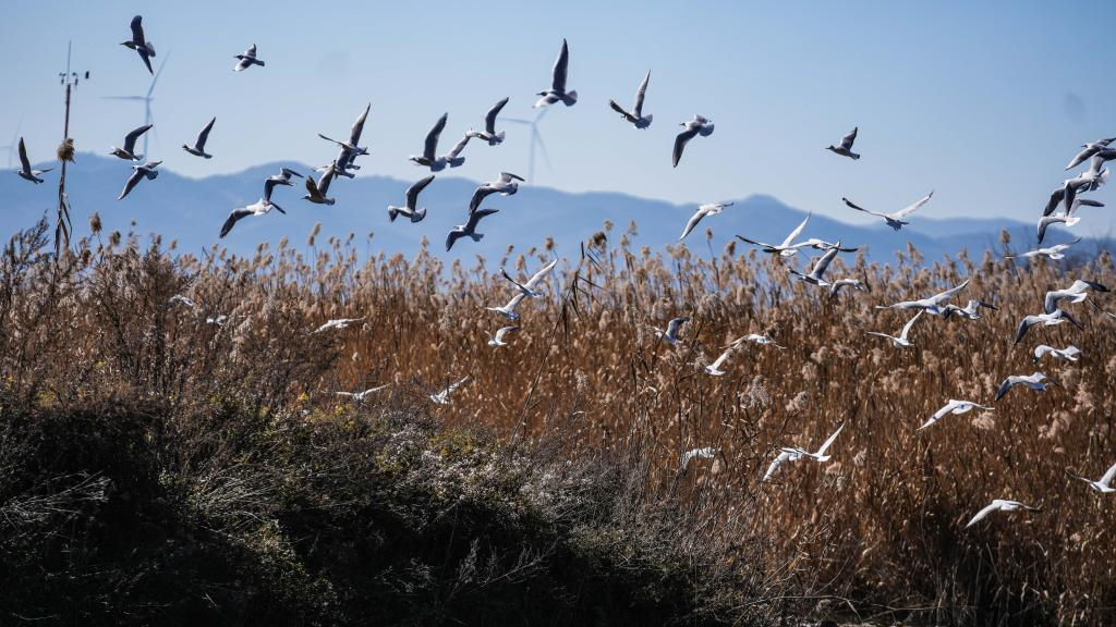 红嘴鸥翱翔贵州草海乐享冬日